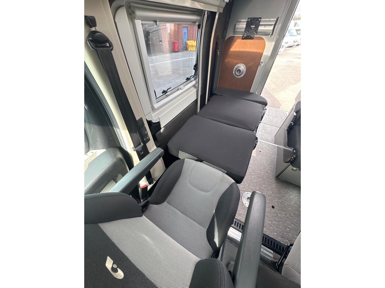 2 Berth: 2 Single beds that are easily converted by the travelling seats. There are 4 travelling seats in total, 2 of which are captain swivel seats in the cab. All fitted with 3-point safety belts.
