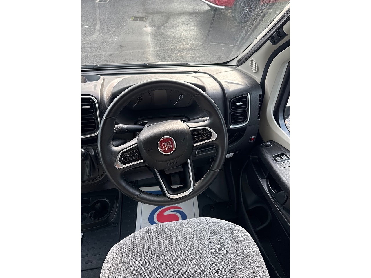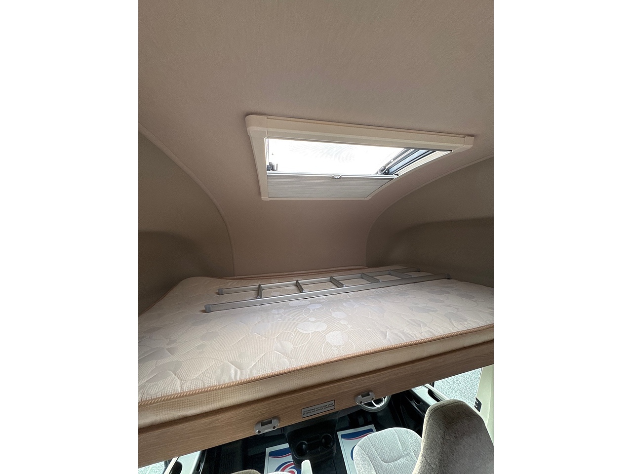 4 Travelling seats, 2 captain swivel chairs in the cab and 2 forward facing. All fitted with 3-point safety belts.