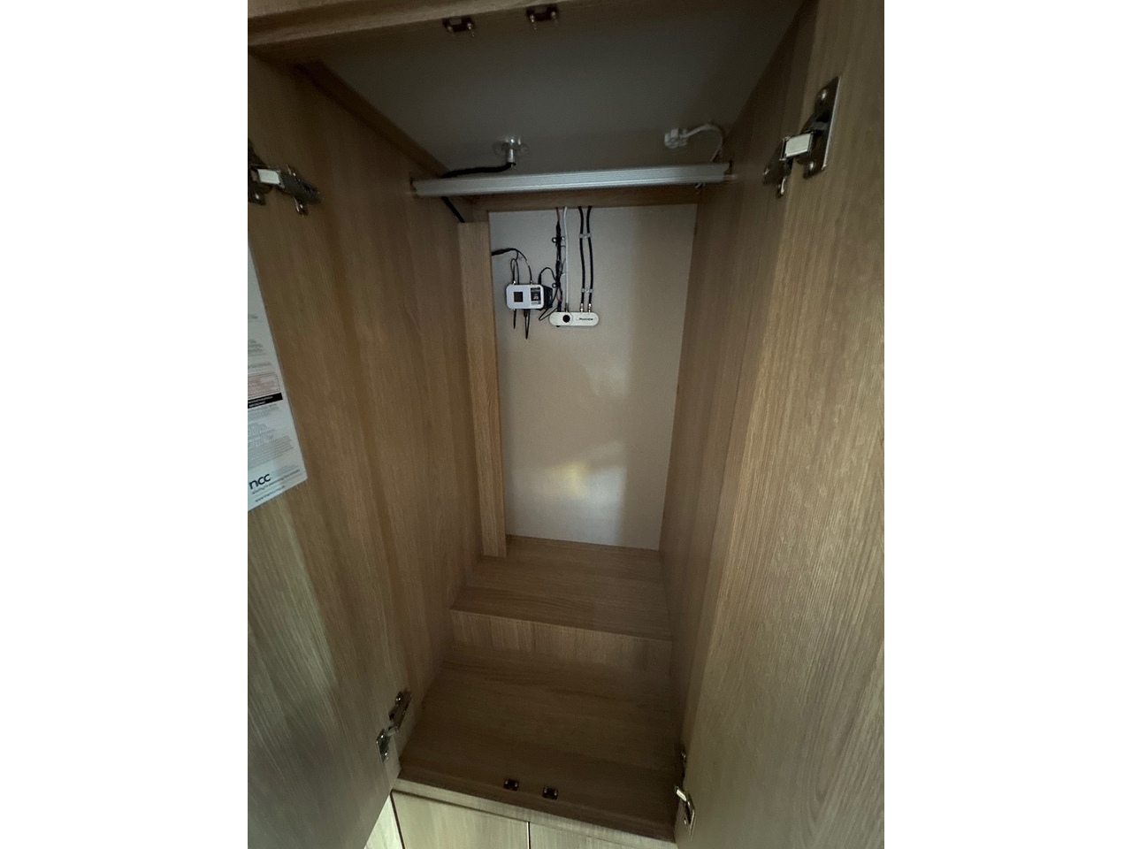 Truma hot water and blown air heating system, operated by a simple LCD panel and rotary dial for menu navigation.
