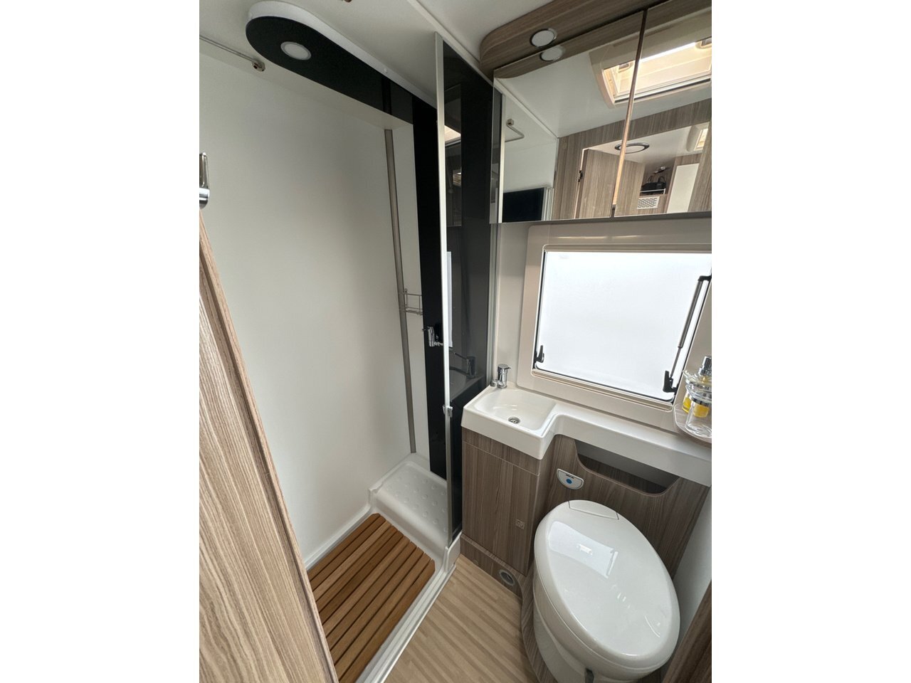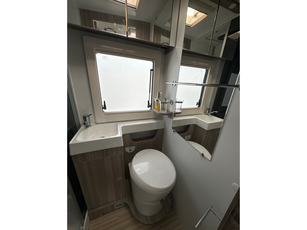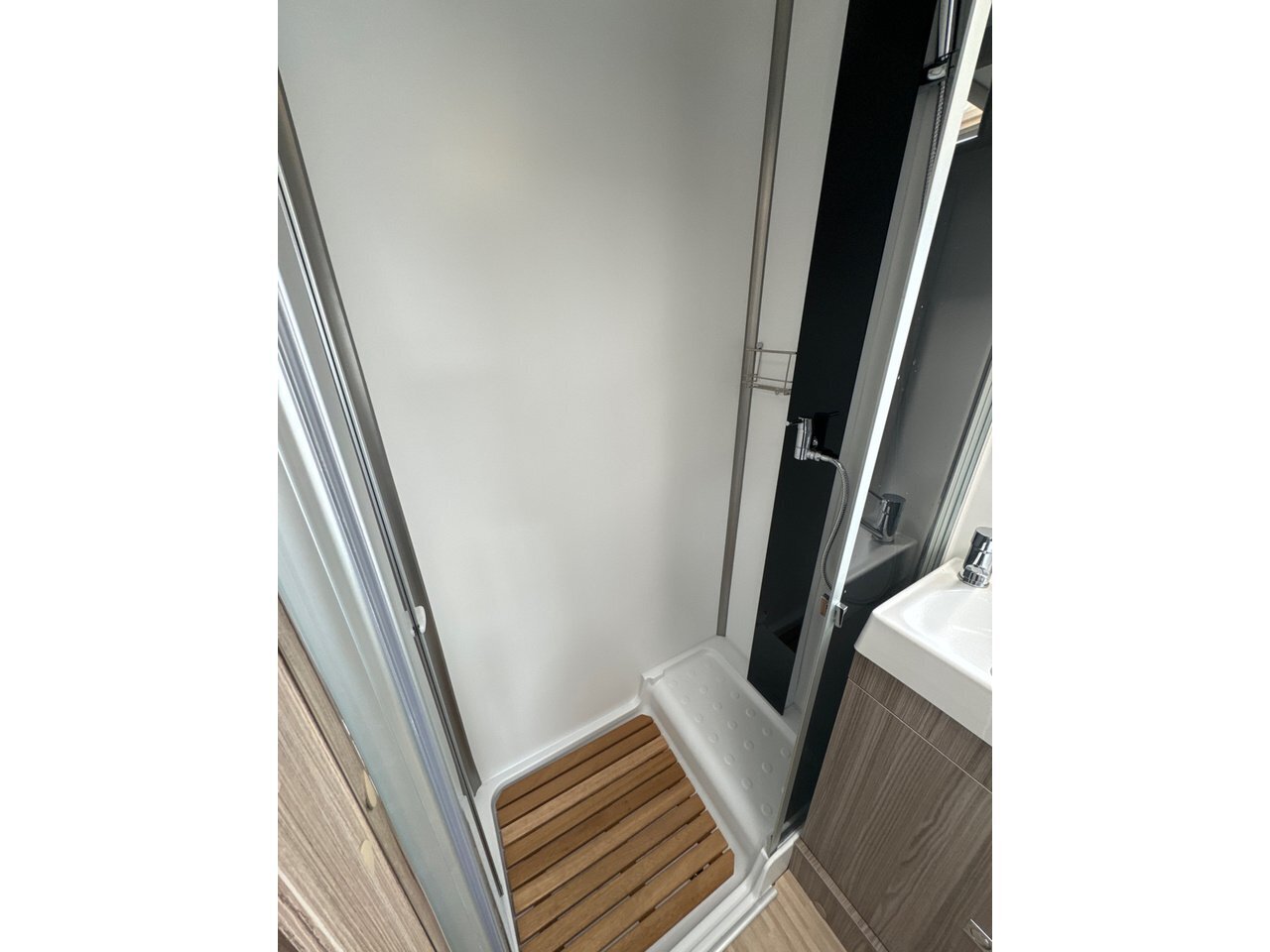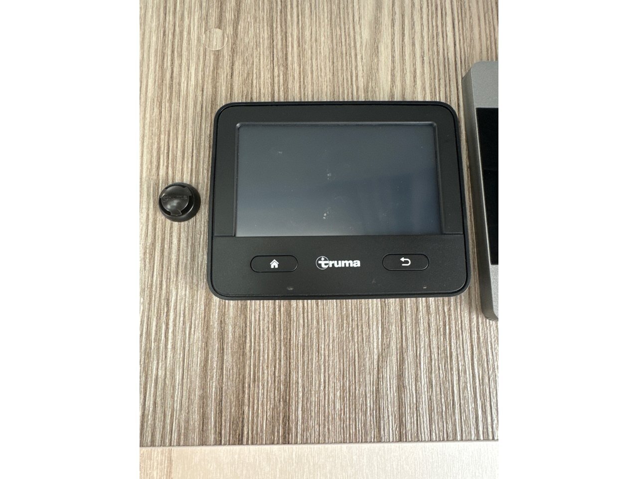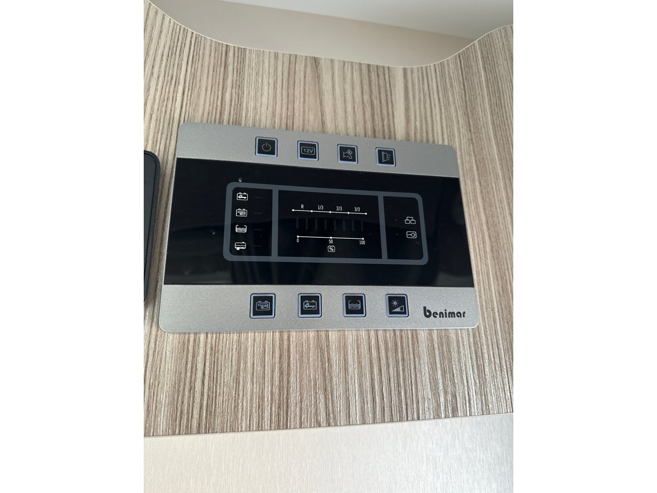 Above the habitation door is a Benimar issue master panel that is easy to use and very intuitive, with indicators that are easy to understand and navigate you toward the right appliance. It controls and isolates internal utilities such as the lights, 12V appliances, water pump, allows for battery select and battery level display, fresh and waste water level display and habitation mood lighting dimmer. On the left is a Truma master panel for the heating and hot water, which can be powered by both mains electric and gas, and is incredibly efficient in heating the habitation and hot water.