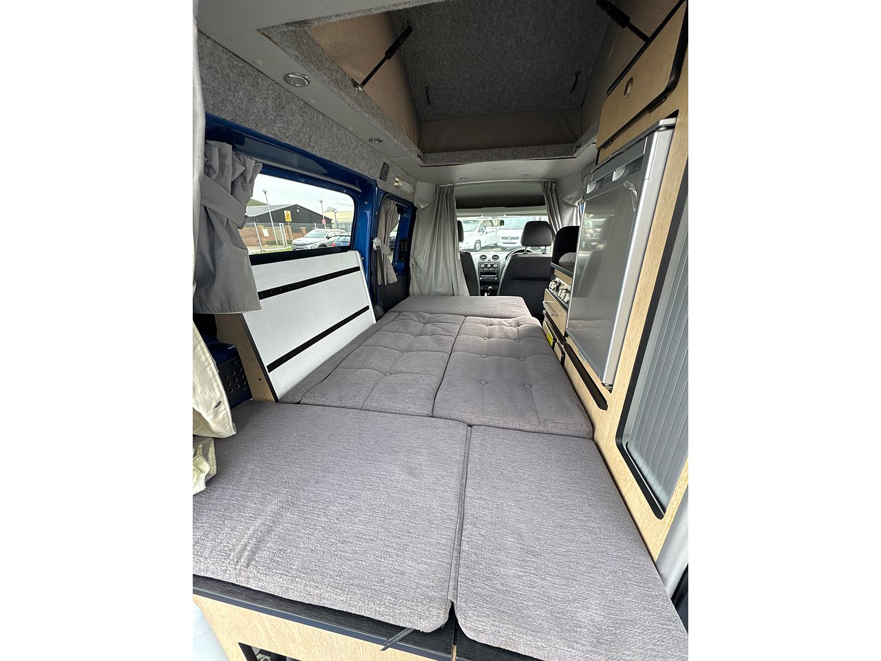 1 Berth using the side bench seat that slides out. 4 Travelling seats, 2 in the rear and 2 Captain chairs in the cab, all fitted with 3-point safety belts.