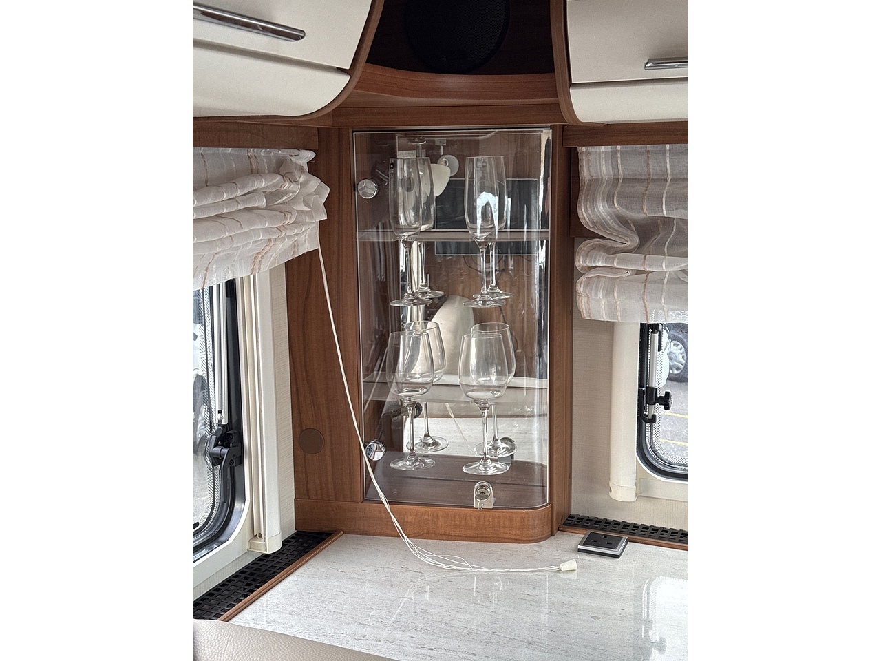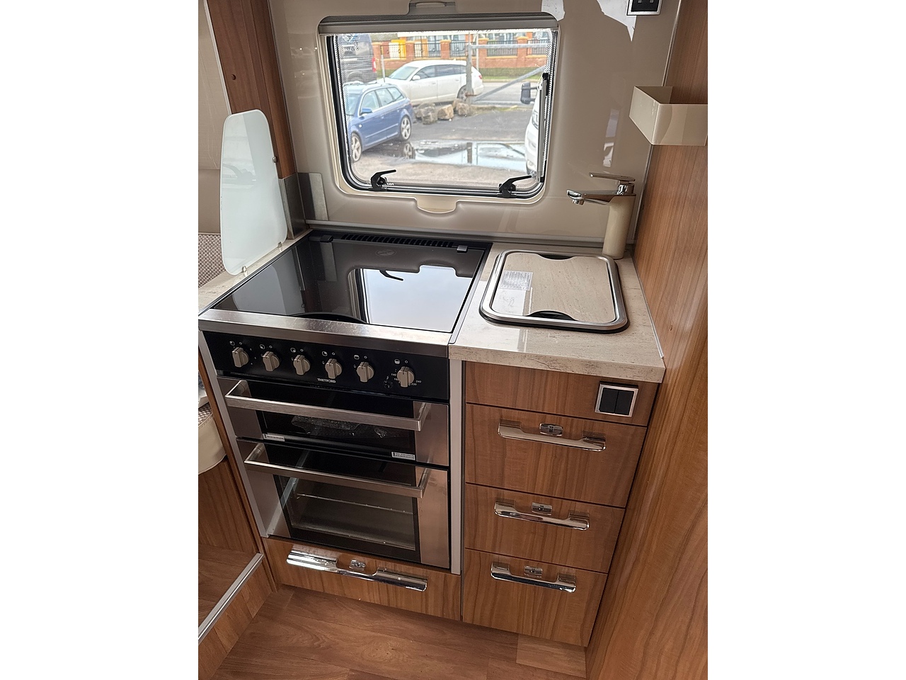 Externally: Alloy wheels, electric step, large rear garage, mains inlet, cassette locker, fresh water filler, fresh and waste water tank drainage points.