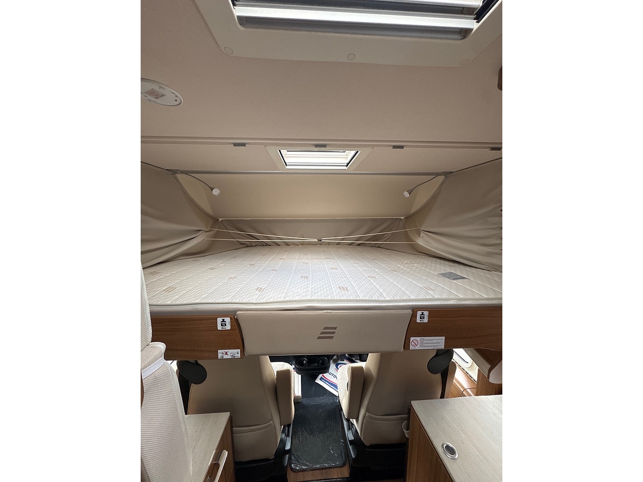 2 Berth: Over cab drop down bed with privacy net. 2 Captain travelling seats in the cab.
