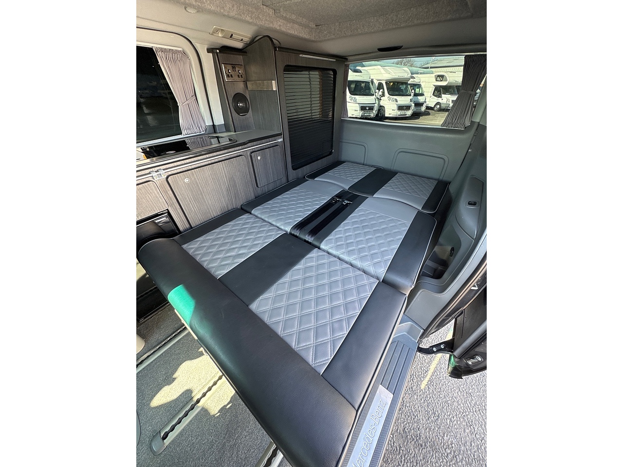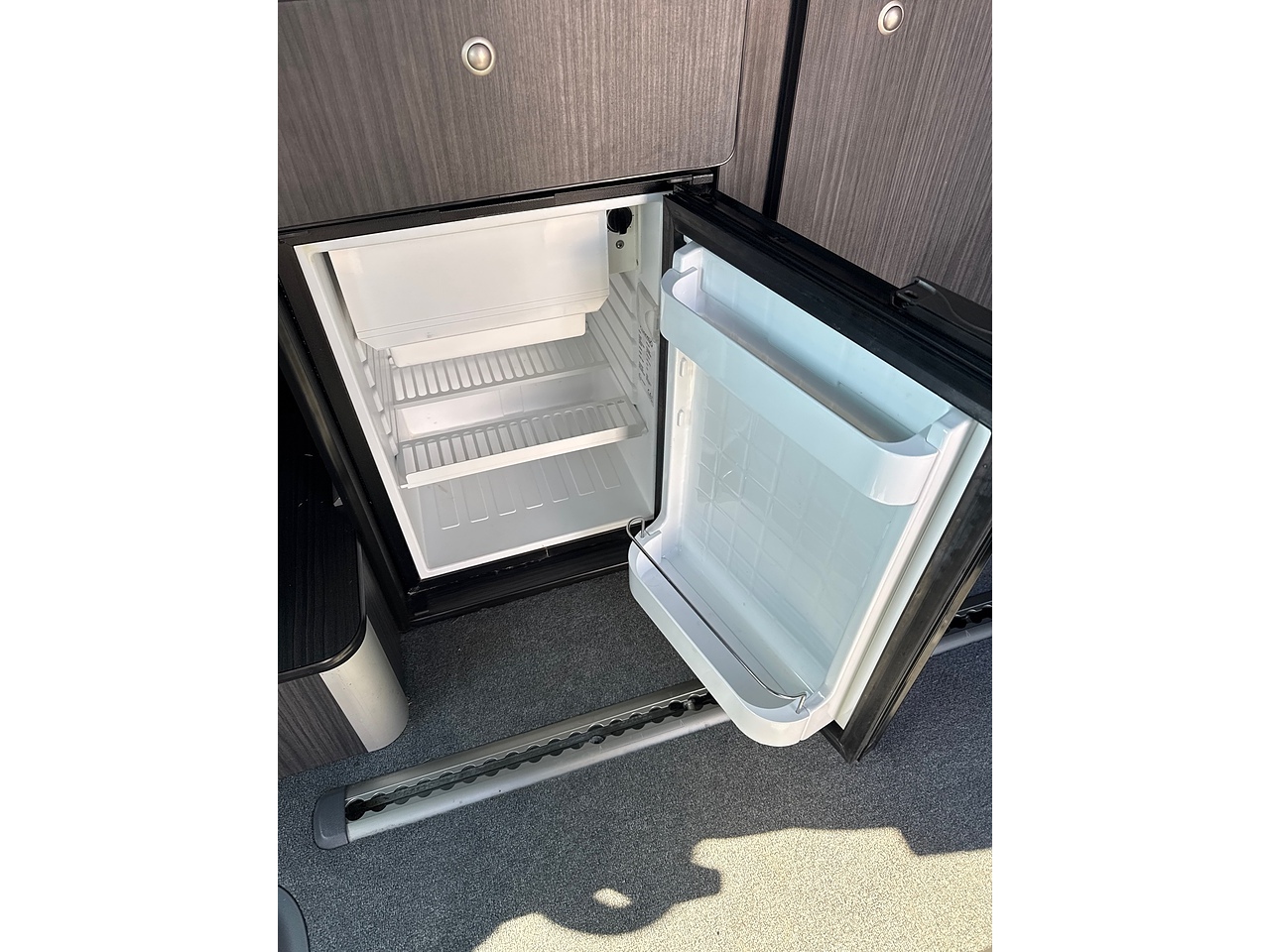 Gas hobs, sink and 12V tap, 12V Dometic compressor fridge.