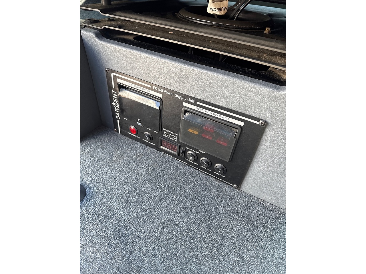 Sargent master panel with battery voltage gauge, 12V appliance isolation, trips and fuses.