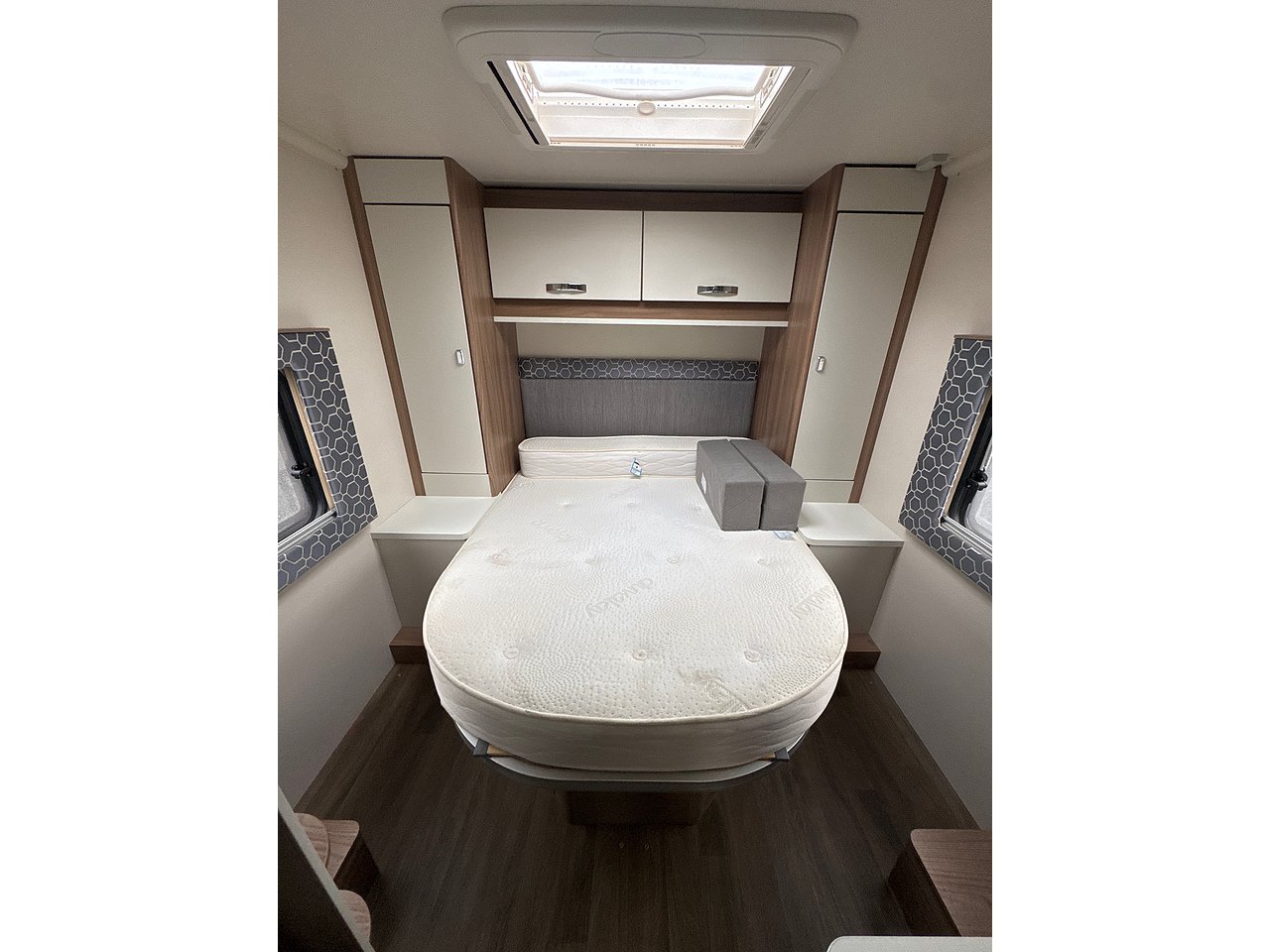 Berth and Sleeping arrangement: 4 Berth, featuring a rear island bed with a memory foam mattress, and a convertible lounge/dining area.