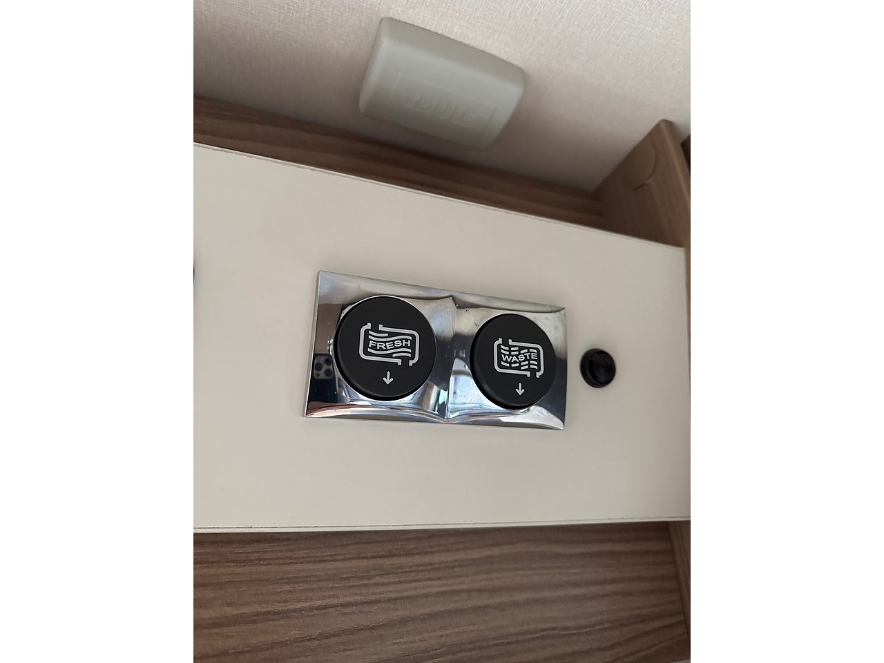 Externally: Wind-out canopy awning, rear bike rack, gas locker, cassette locker, fresh water filler and a mains powere inlet.
