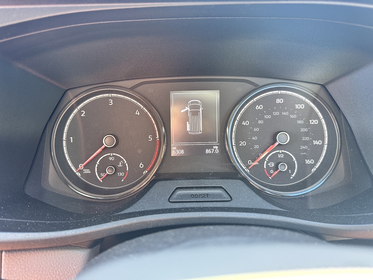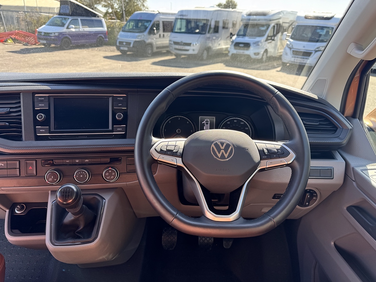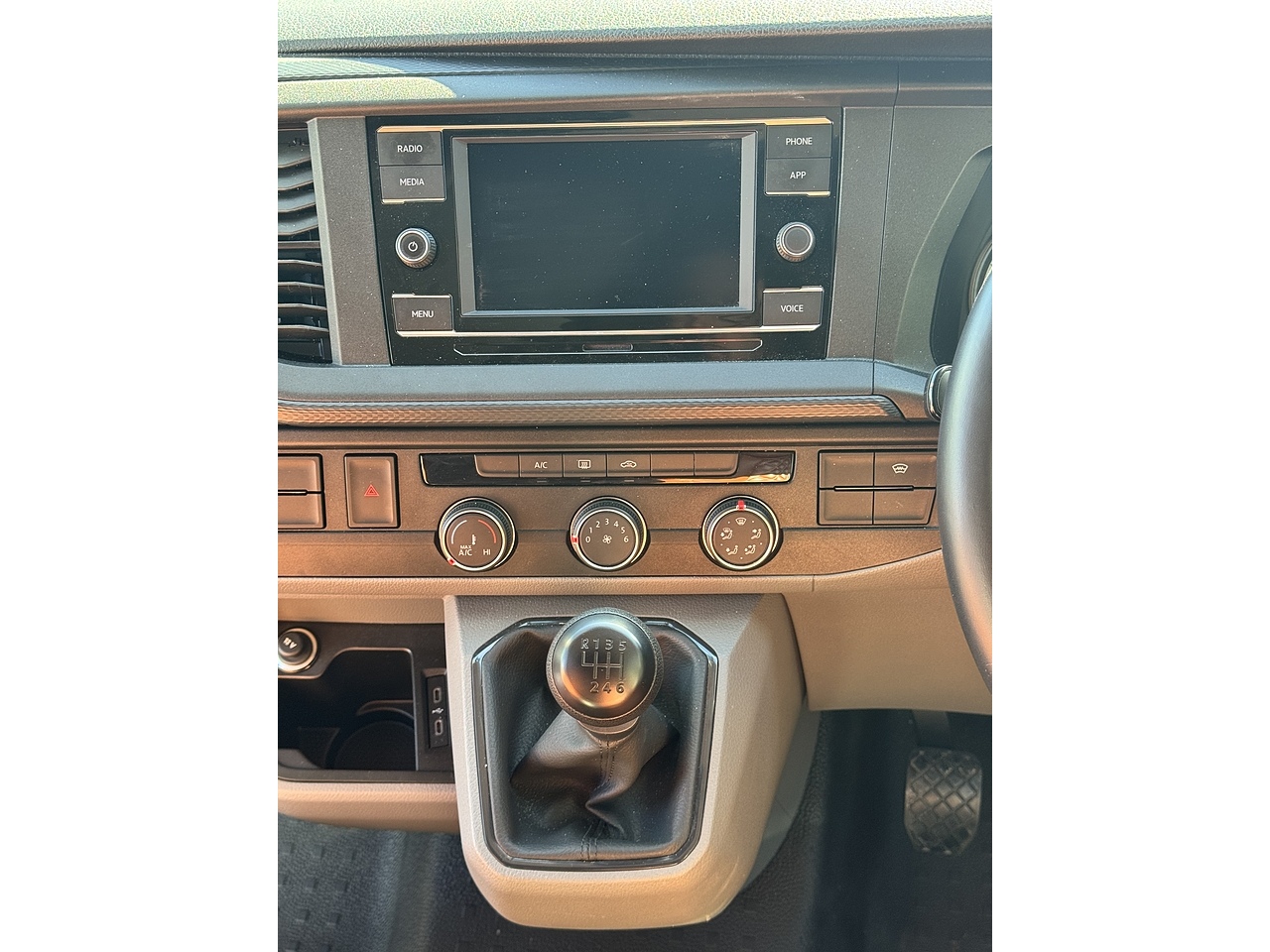 In the cab: Latest VW ergonomics, touch screen infotainment system with App functionality, radio and hands free. 6-speed manual gearbox, AC, heating windscreen, parking sensors, start/stop, cruise control, electric mirrors and more.