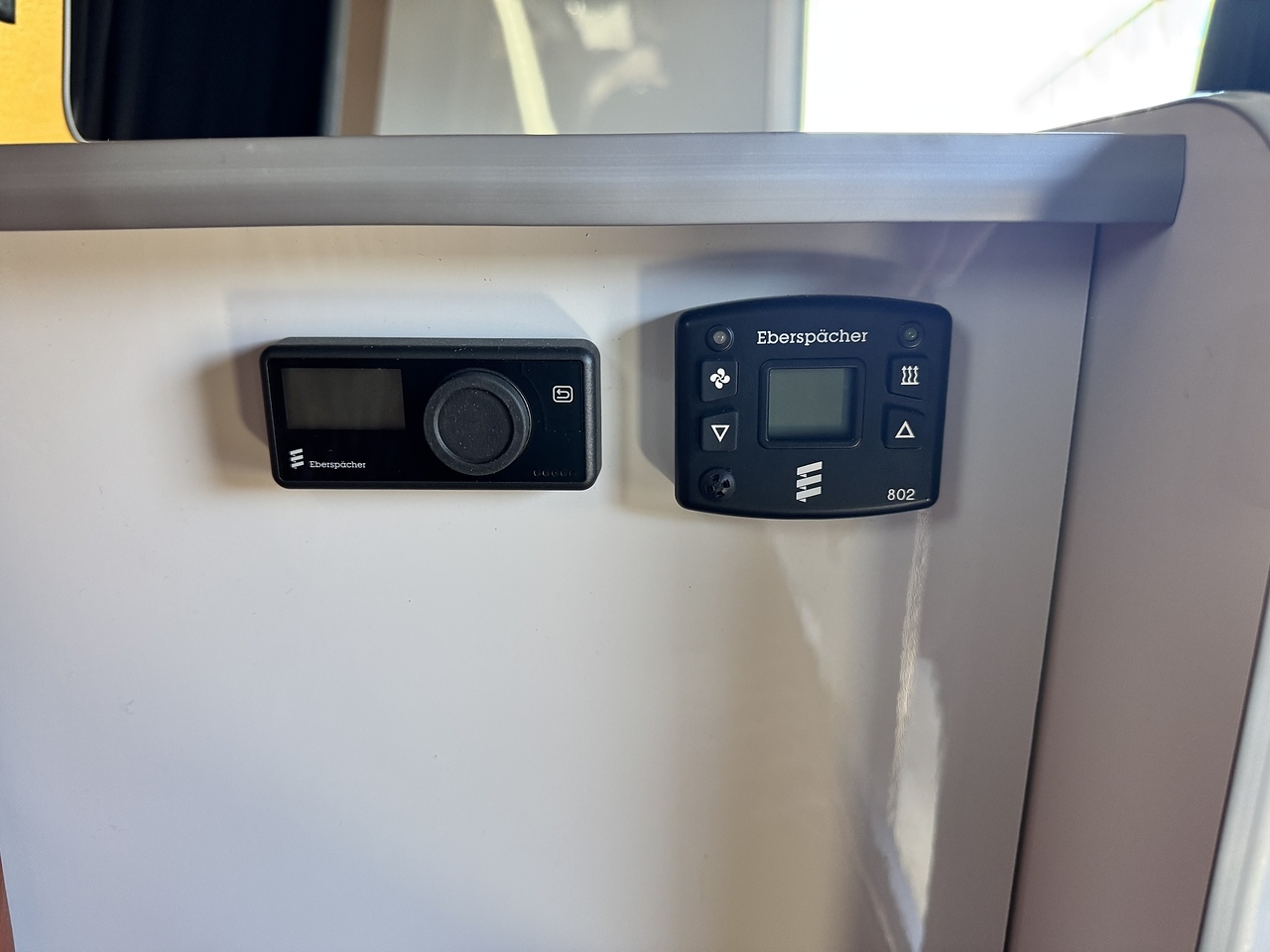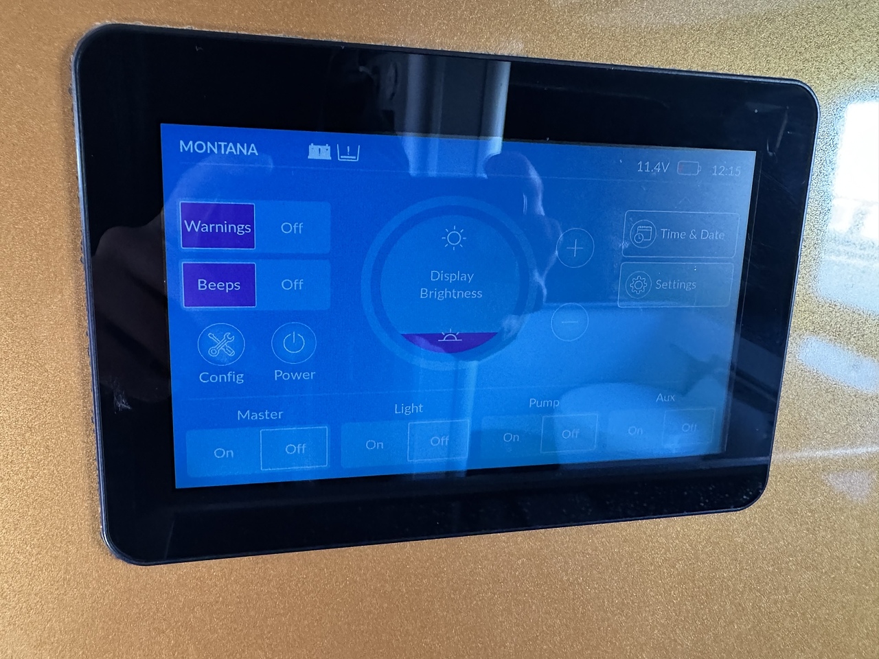 Touchscreen master panel for 12V appliance isolatoin and gauges for water levels and battery voltages. Eberspacher diesel night heater.