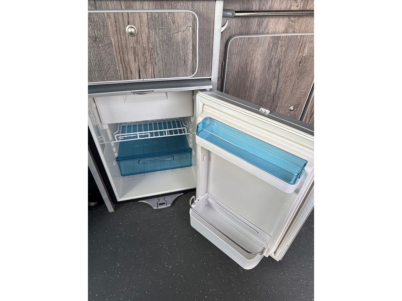12V compressor fridge, gas hobs, sink and 12V powered tap.